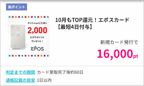 今月のオススメは「エポスカード」(8,500pt~16,000pt)です。
