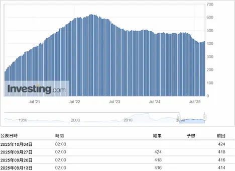 引用:investing/ベーカー・ヒューズ社発表の米石油採掘装置(リグ)稼働数