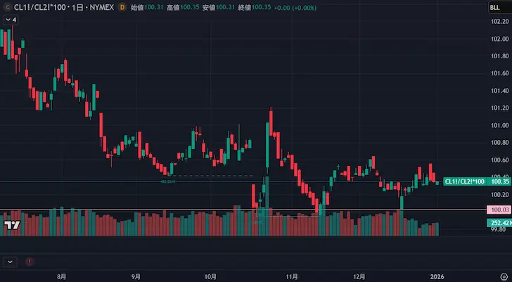 原油先物の期近と期先とのスプレッドは需給状態を端的に表しており、Trading Viewでチャート化するとさらに状況判断がしやすくなりトレードに役立てることができます。