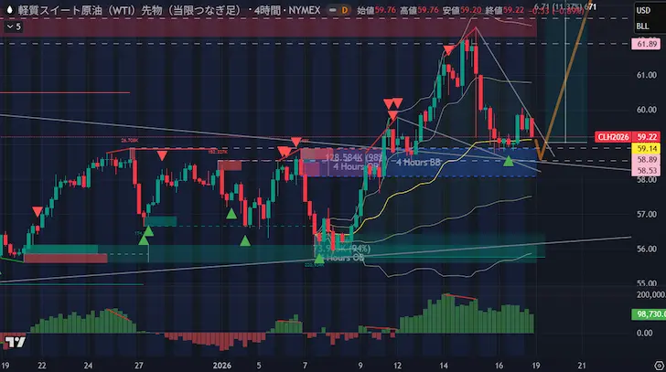 こんにちは、cohamizu(@cohamizu1)です。先週のWTI(ウェスト・テキサス・インターミディエイト)は、ベネズエラ・イランと相次ぐアメリカの軍事力行使の思惑で買いが先行し、一時59.77まで反発した場面がありました。[…]