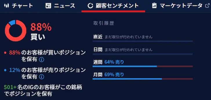 IG証券の口座開設者が閲覧可能なデータが、この顧客センチメントです。
