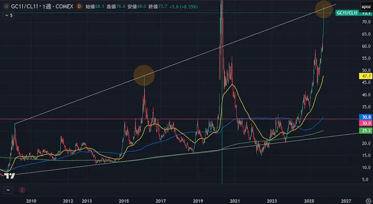 先週からさらに金/原油比率は、コロナショックの時のイレギュラーな数値に匹敵するような危険は上昇が続いてきました。