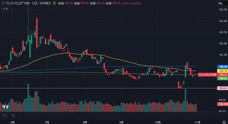 原油先物の期近と期先とのスプレッドは需給状態を端的に表しており、Trading Viewでチャート化するとさらに状況判断がしやすくなりトレードに役立てることができます。