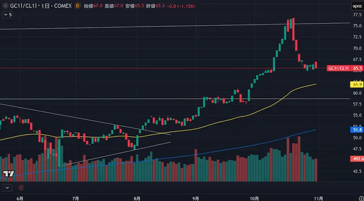 先週からさらに金/原油比率は、コロナショックの時のイレギュラーな数値に匹敵する危険な上昇が続いてきました。