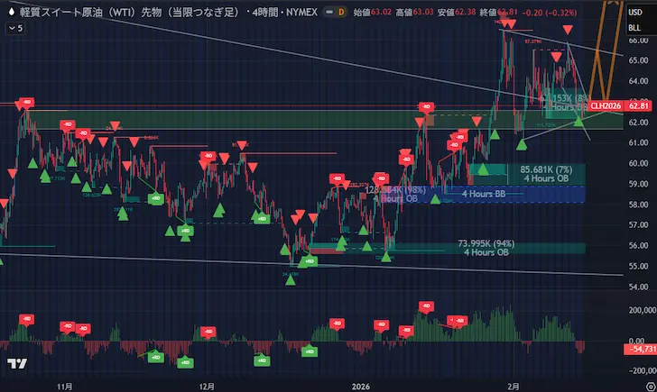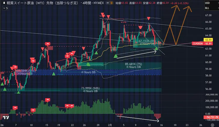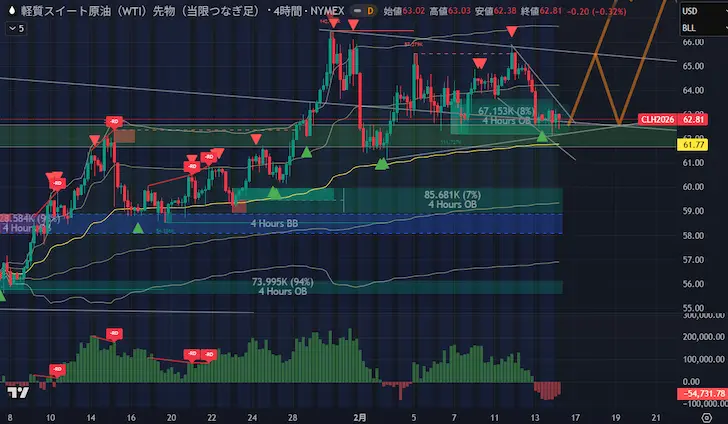 2月13日時点のWTIは$62.80前後で推移していますが、交渉の膠着は市場にとって「下値を支える強い要因」となります。