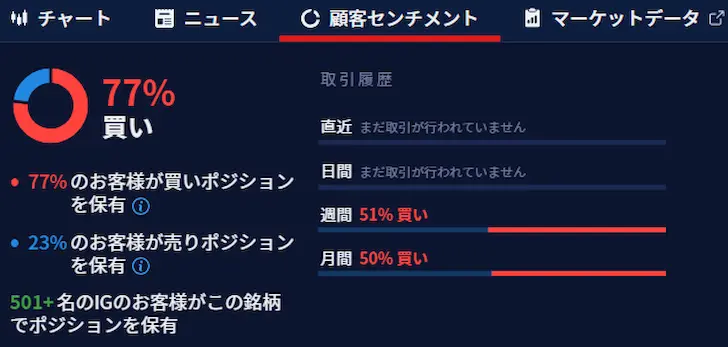 IG証券の口座開設者が閲覧可能なデータが、この顧客センチメントです。
