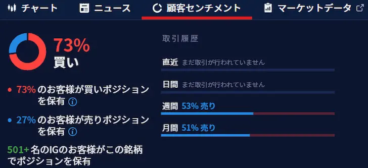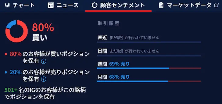 IG証券の口座開設者が閲覧可能なデータが、この顧客センチメントです。