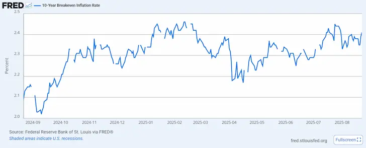これはおそらくジャクソンホール会議でのパウエルFRB議長の発言を受けて、利下げ期待が大きくなり期待インフレ率が高まったためと考えられます。