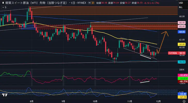 WTI原油 2025年12月第1週テクニカル分析