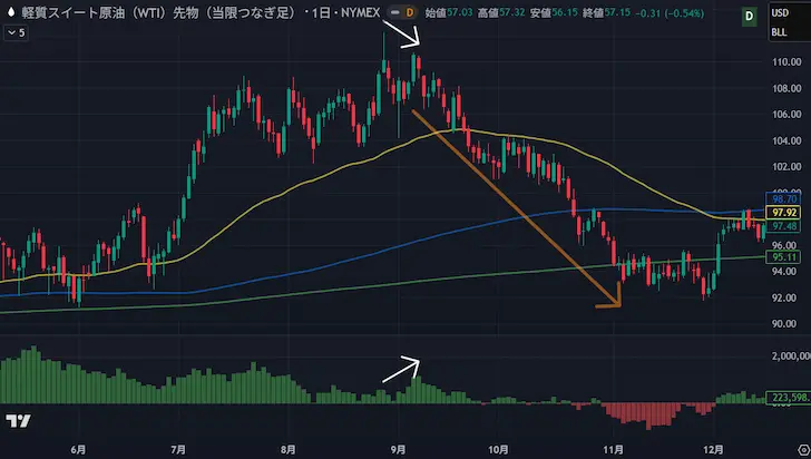 - 出来高増加 + 価格下落:強い売り圧力を示唆しており、下降トレンドの信頼性が高いと判断できます。
