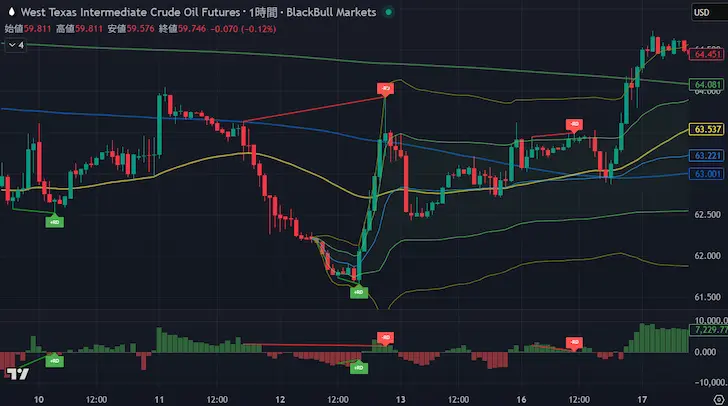 ですので原油であればブローカーのCFDではなく、「CL1!」を参照とすべきでしょう。